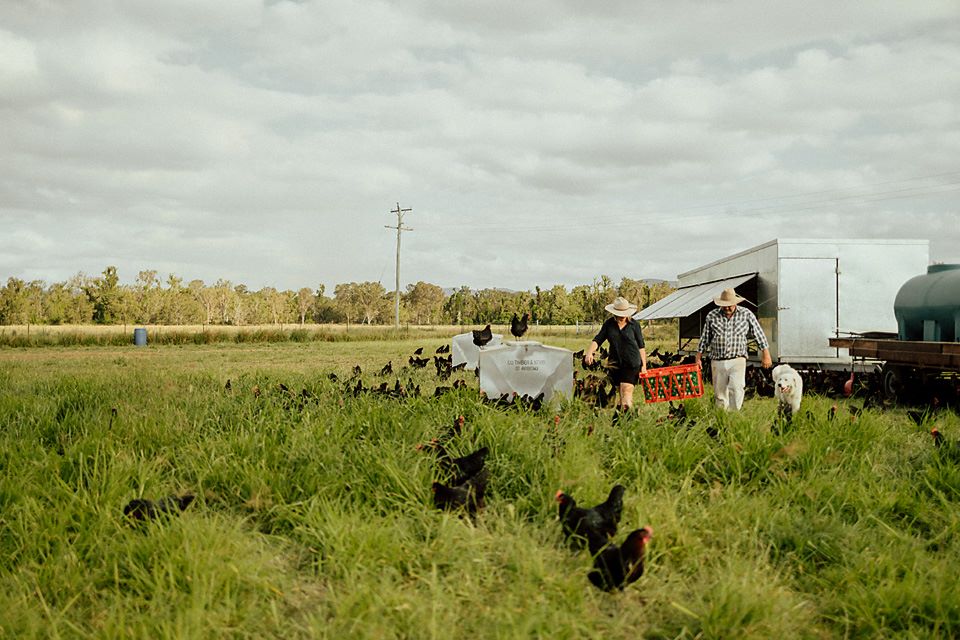 With 300 heritage breed pigs and 30 sows, 3500 laying hens, 36 drought master cattle. Our familiy pride ourselves on raising happy healthy animals. Our animals are moved around the farms grazing natural pasture, followed by our chickens who scratch, aerate and fertilise the land, gobbling up any parasites left behind. Because we rear our animals this way we do not need to use chemicals, hormones, antibiotics or pesticides.